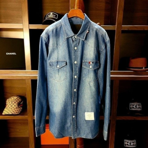 THOM BROWNE 톰브라운 시그니쳐 투포켓 워싱 연청 데님셔츠