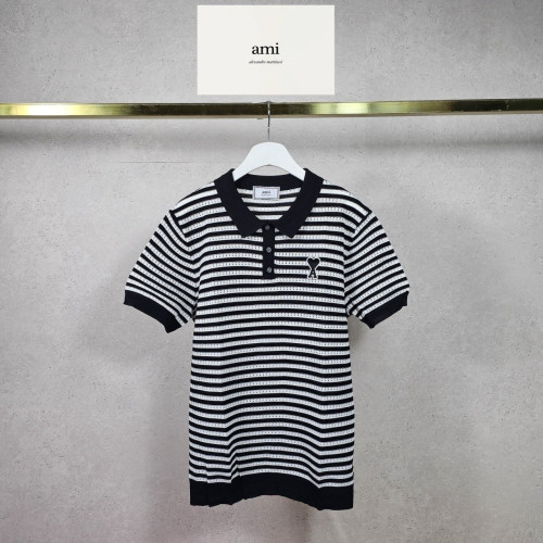 • AMI 아미 스트라이프 버튼 카라 니트 하프 3COLOR