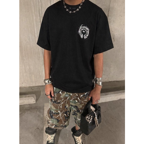 • CHROME HEARTS 크롬하츠 빈티지 스모크 홀스슈 스틸 로고 숏 슬리브 티셔츠 2COLOR
